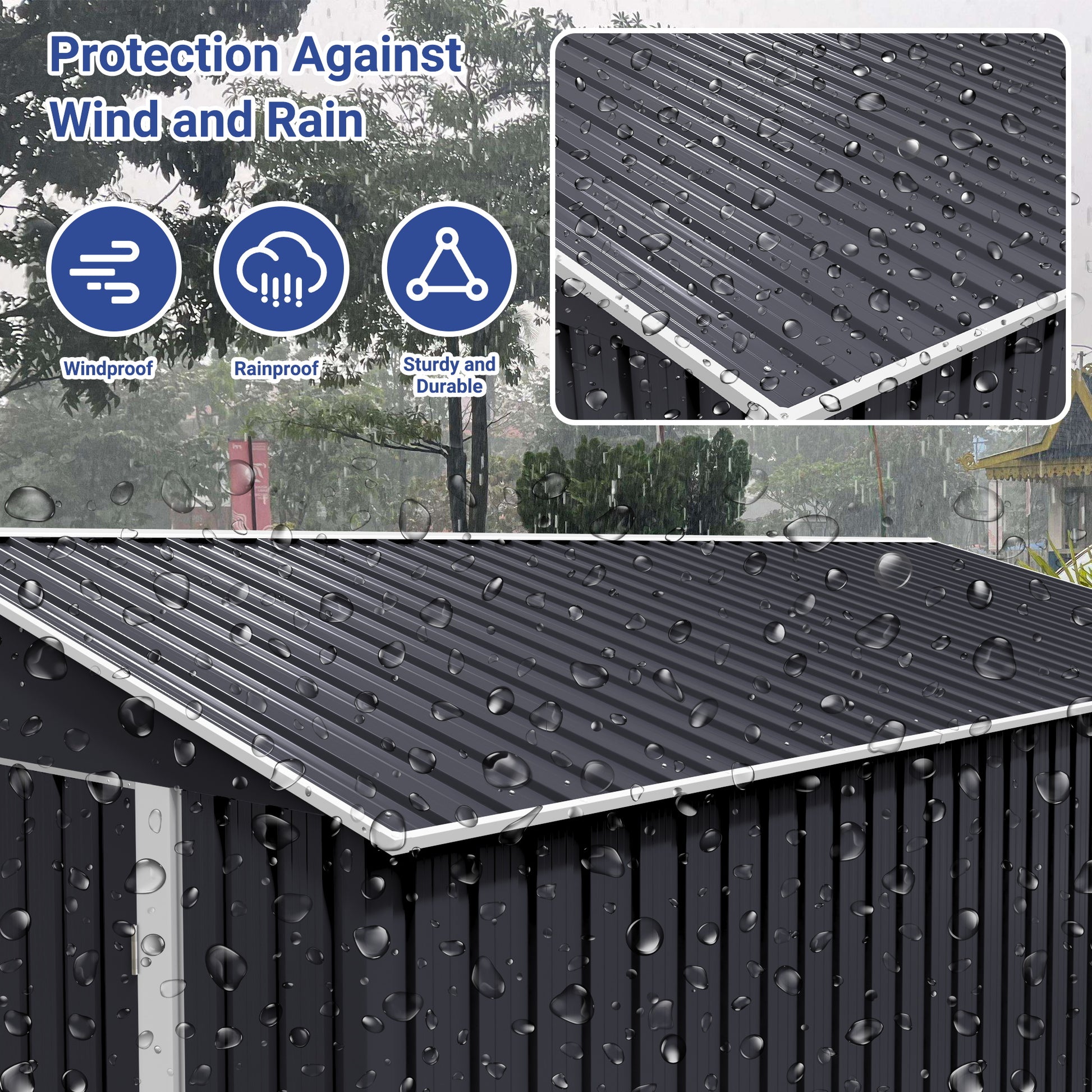 NETAJE 8x12 FT Outdoor Metal Shed with Updated Aluminum Frame, Storage Shed with Lockable Doors & Sliding Roof for Backyard, Garden, Gray