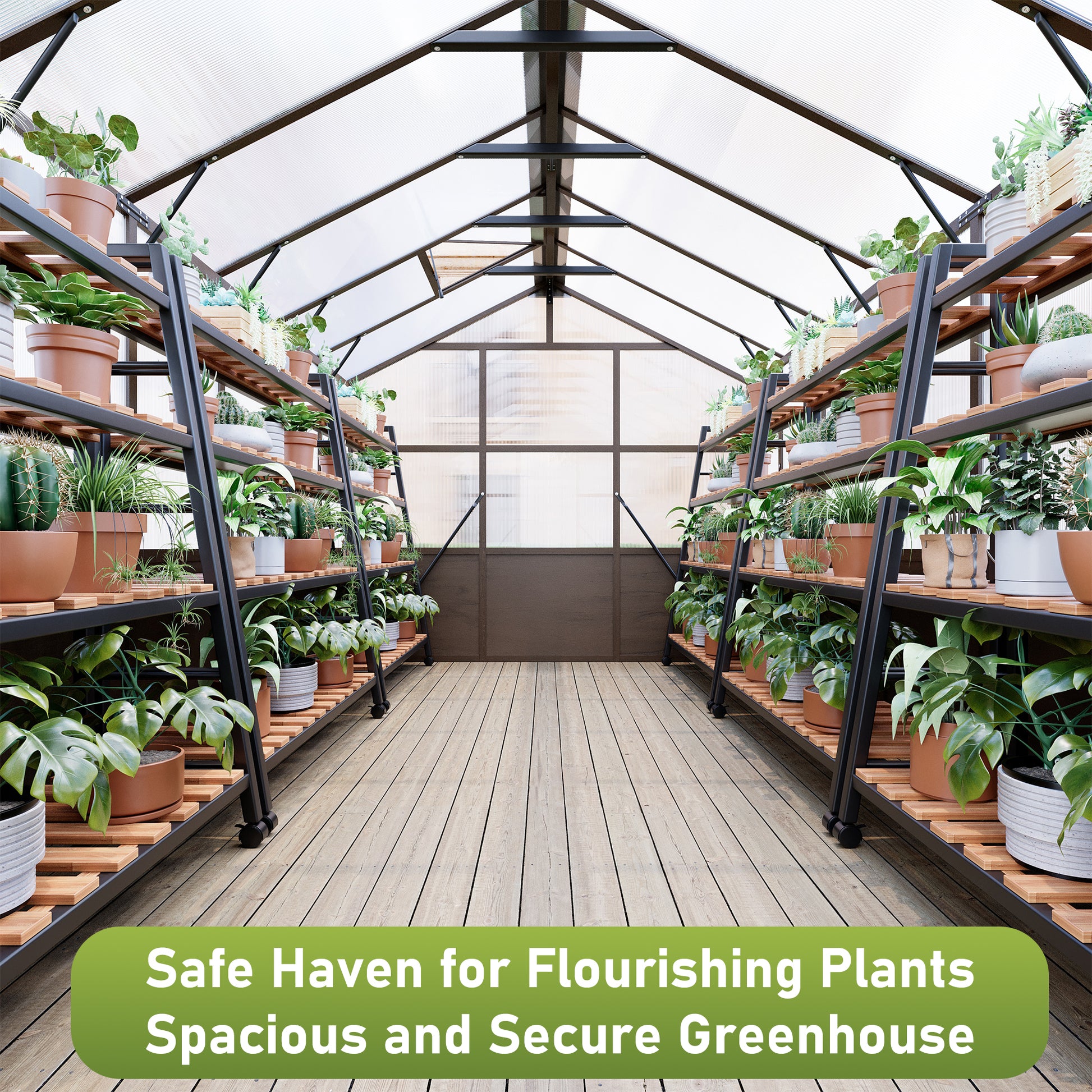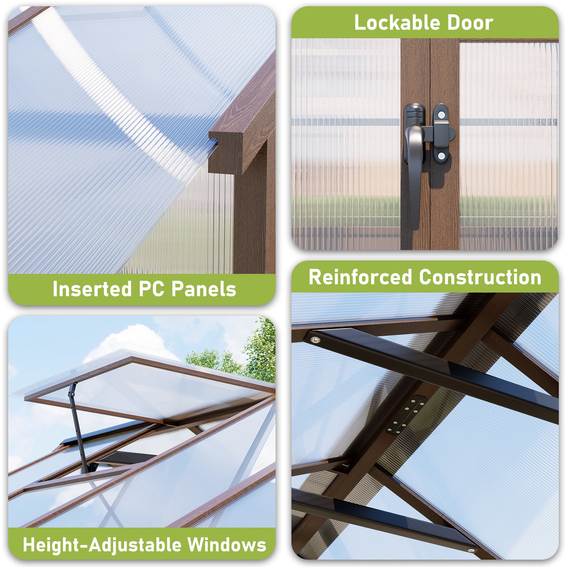 - 【Resistant and Sturdy】The wood greenhouse built with high-quality solid pine timber and premium hardware, reinforced with an aluminium alloy frame for superior structural stability and storm resistance, ensuring year-round growing security.