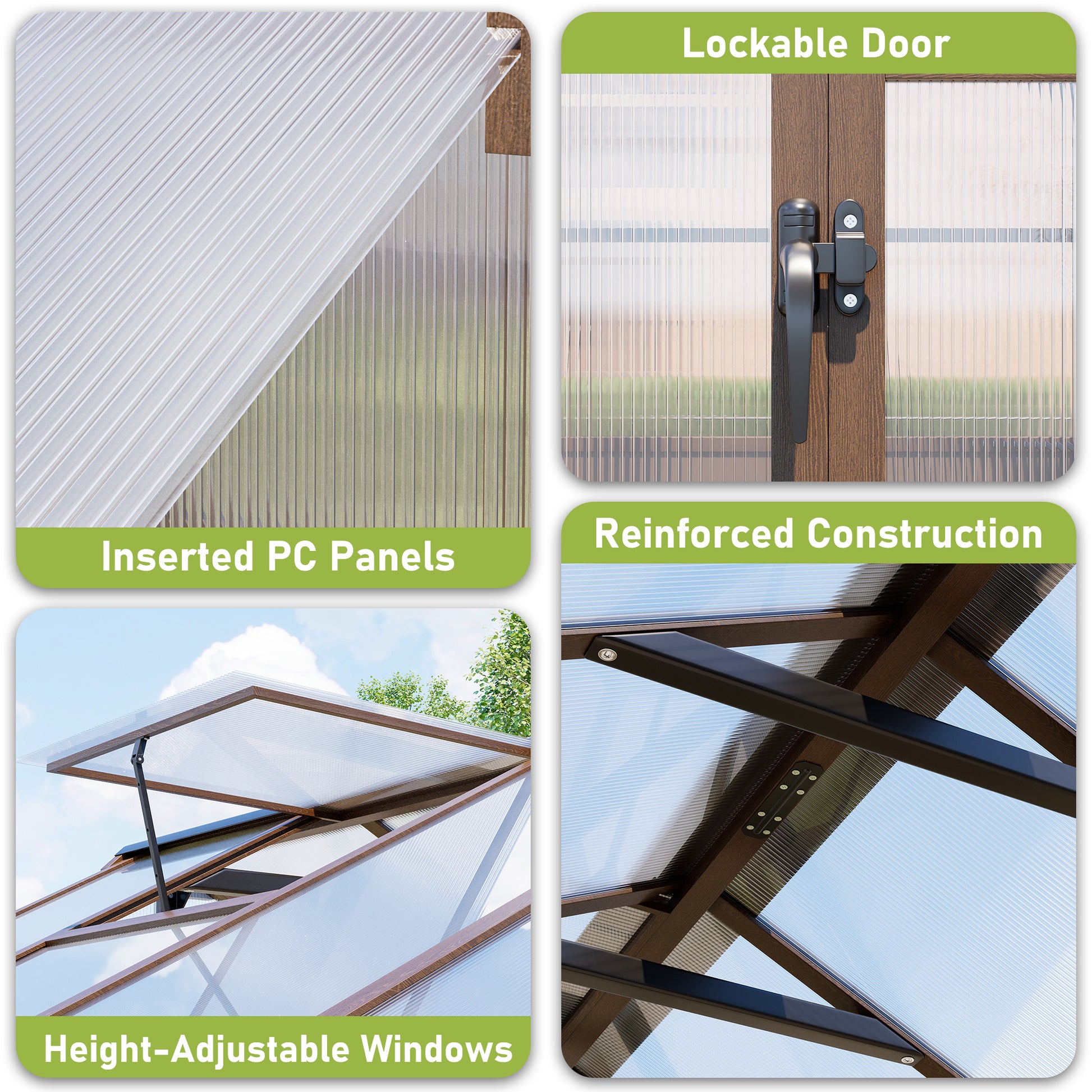 - 【Resistant and Sturdy】The wood greenhouse built with high-quality solid pine timber and premium hardware, reinforced with an aluminium alloy frame for superior structural stability and storm resistance, ensuring year-round growing security.